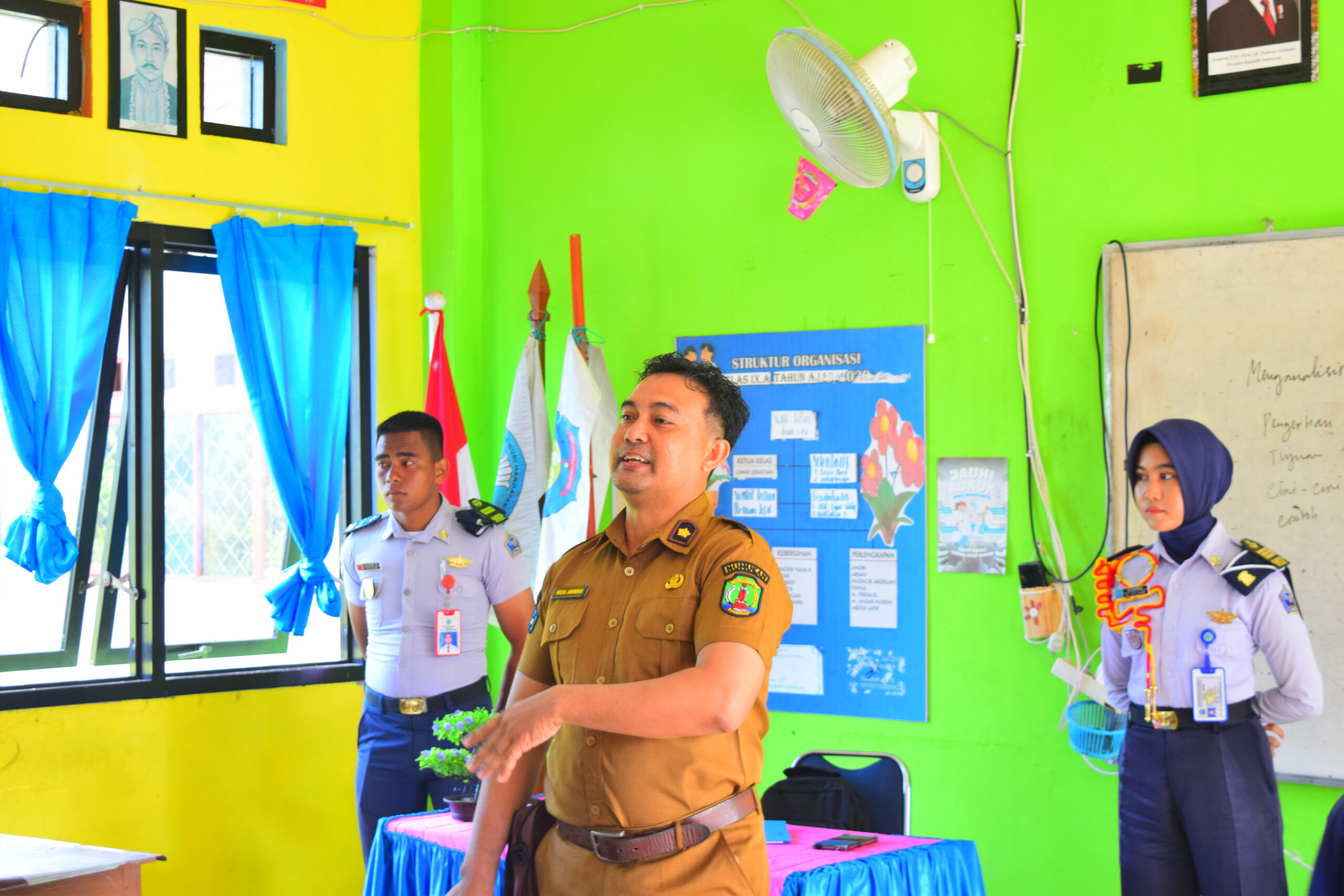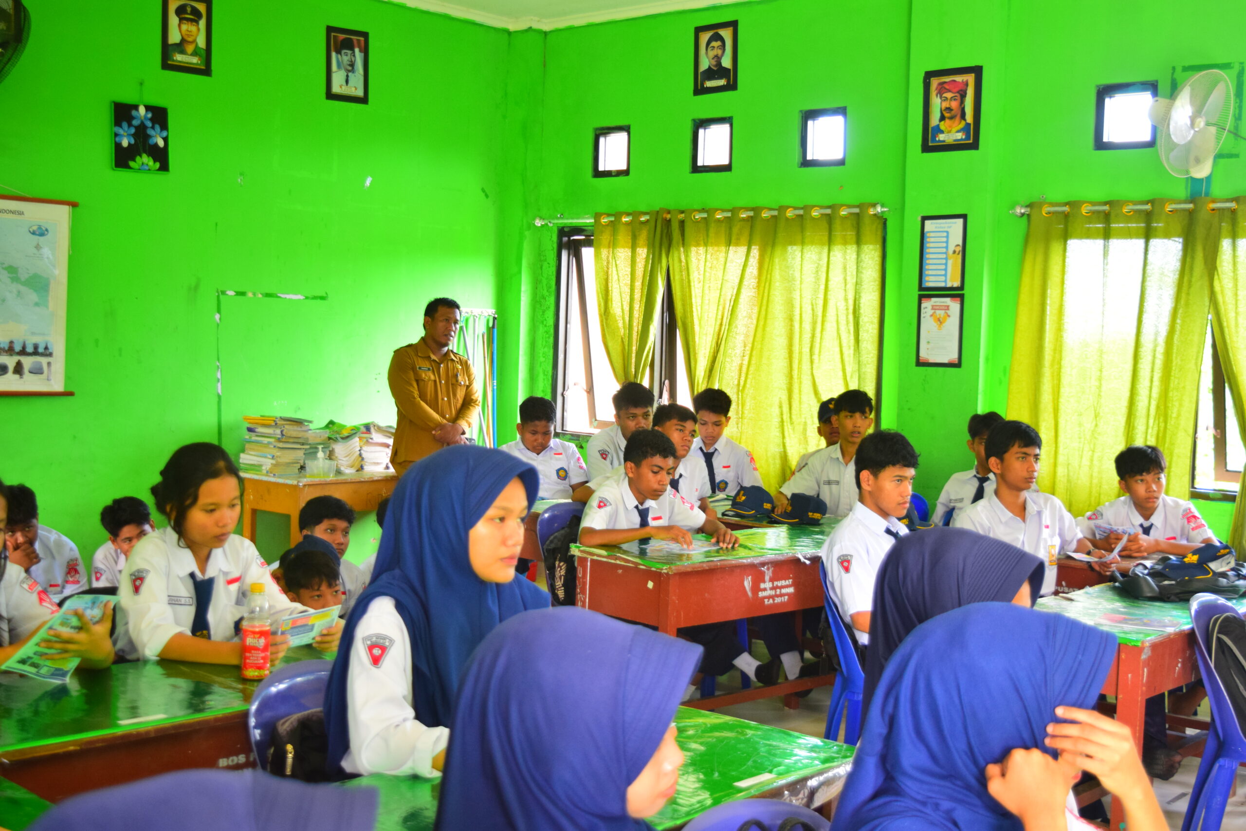 Kegiatan sosialisasi tersebut dilaksanakan dengan didampingi oleh Kepala SMP Negeri 2 Sebatik Barat, Bapak Muh. Anwar, S.Pd., yang dalam kesempatan ini mendampingi peserta didik SMK Pelayaran Baruna Jaya Watampone dalam pelaksanaan sosialisasi ke SMP Negeri 2 Nunukan. Kehadiran beliau menjadi bentuk dukungan dan pendampingan terhadap siswa SMK dalam kegiatan pengenalan sekolah kepada peserta didik tingkat SMP.